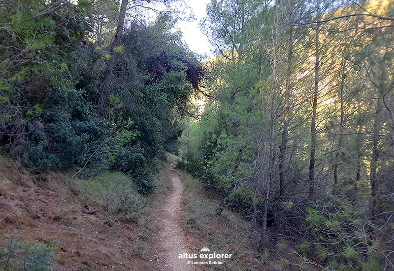 Αρχή του μονοπατιού προς τη πευκόφυτη χαράδρα