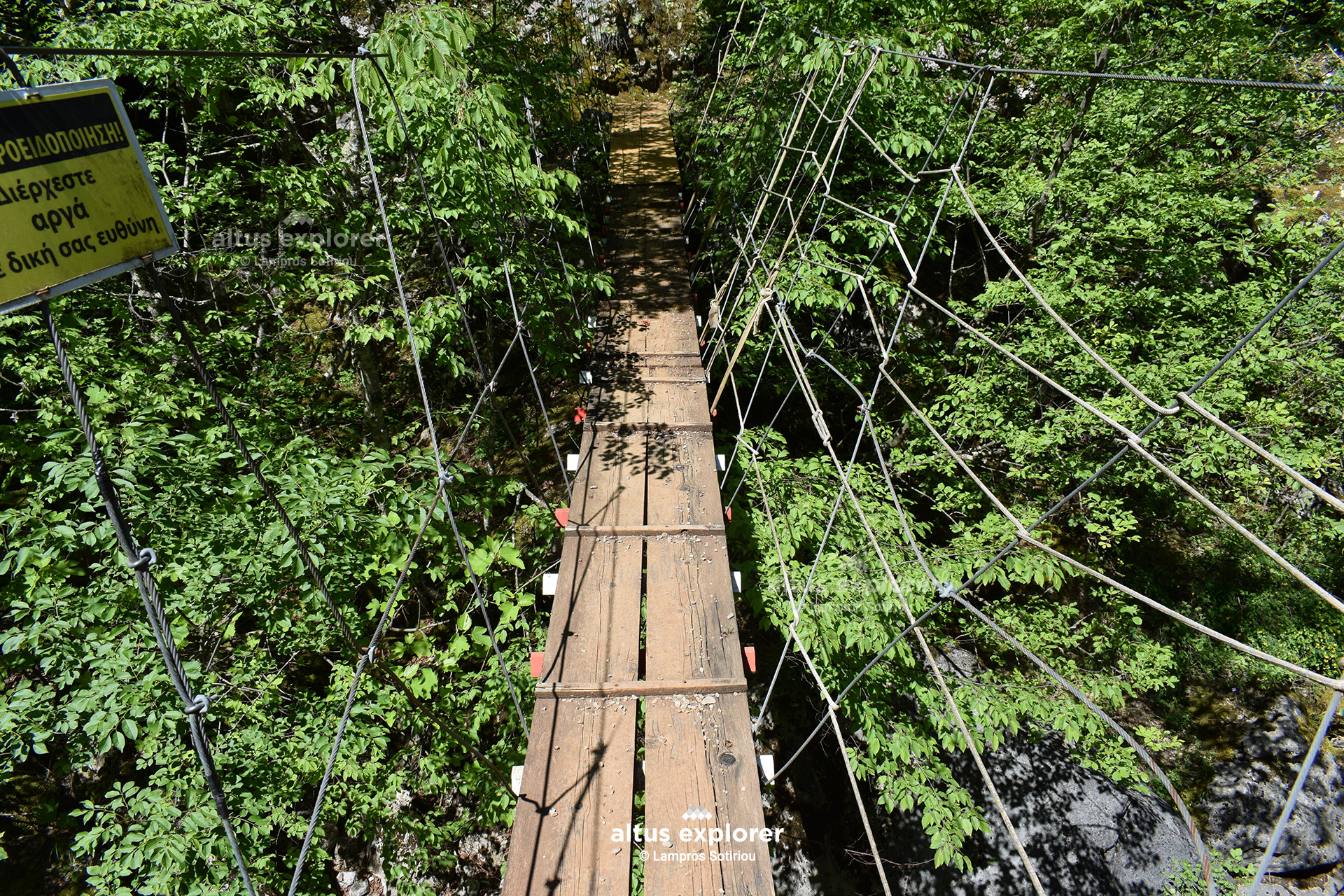 Η περισσότερη διαδρομή είναι σκιερή σε κάποια σημεία της κατάβασης υπάρχουν σχοινιά μόνιμα τοποθετημένα και φτάνεις σε μια ξύλινη γέφυρα. Ε, εντάξει, λίγο κουνάει… αλλά είναι γοητευτικά "ινσταγκραμική" και φαινομενικά ασφαλής. (Λέω φαινομενικά γιατί δεν θα βάλω το χέρι μου στη φωτιά, υπάρχει και προειδοποιητική πινακίδα ).